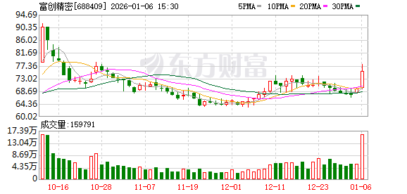富创精密1月6日大宗交易平台出现一笔成交,成交量20.00万股,成交金额1500.00万元,大宗交易成交价为75.00元,相对今日收盘价折价0.70%。该笔交易的买方营业部为方正证券股份有限公司总部,卖方营业部为国泰海通证券股份有限公司沈阳大西路证券营业部。