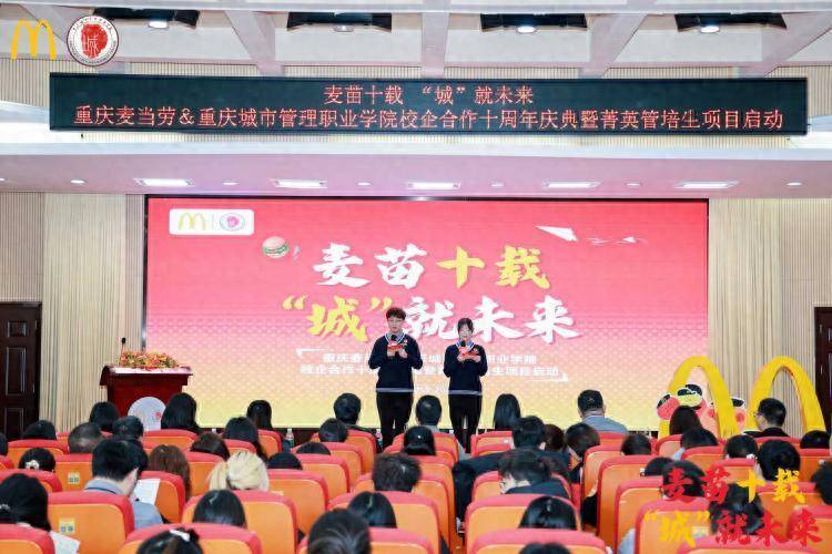 十年深耕,携手共育。2026年1月9日,重庆麦当劳与重庆城市管理职业学院共同迎来校企合作十周年的里程碑时刻。双方以一场“麦苗十载,‘城’就未来”的主题庆典,回顾了十年同心育人的不凡历程,并正式启动了面向未来的“菁英管培生项目”,标志着麦当劳在渝人才战略的又一次深化与升级。