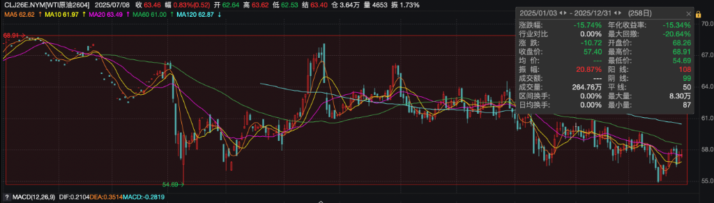 2025年,受全球经济增长放缓与非OPEC+产油国供应强劲的双重压力,国际油价全年走势疲软,WTI原油价格跌超15%。